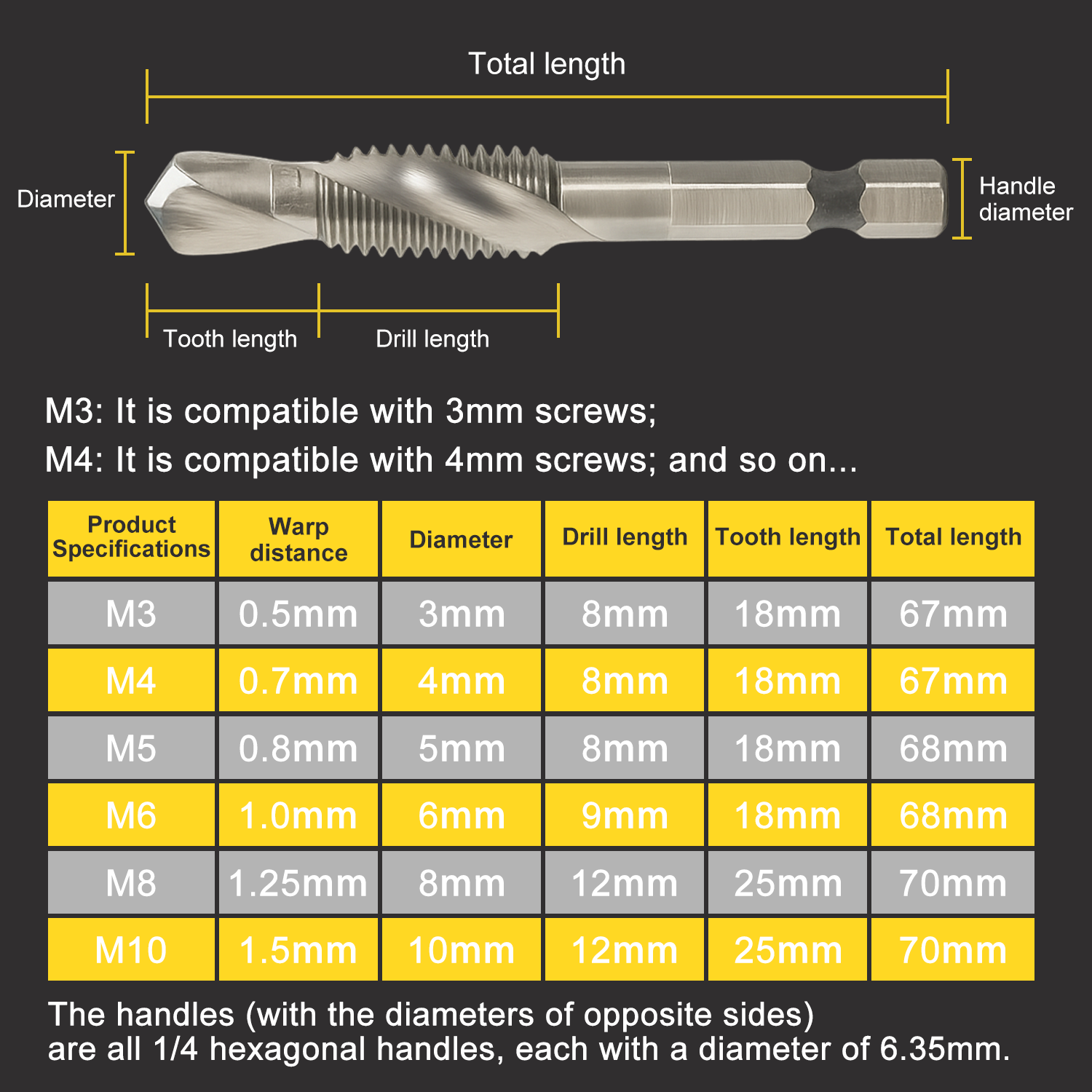 - GREAT FOR VARIOUS THREADS: The bits come in 6 different sizes from M3 to M10 so it could meet your diversified requirements